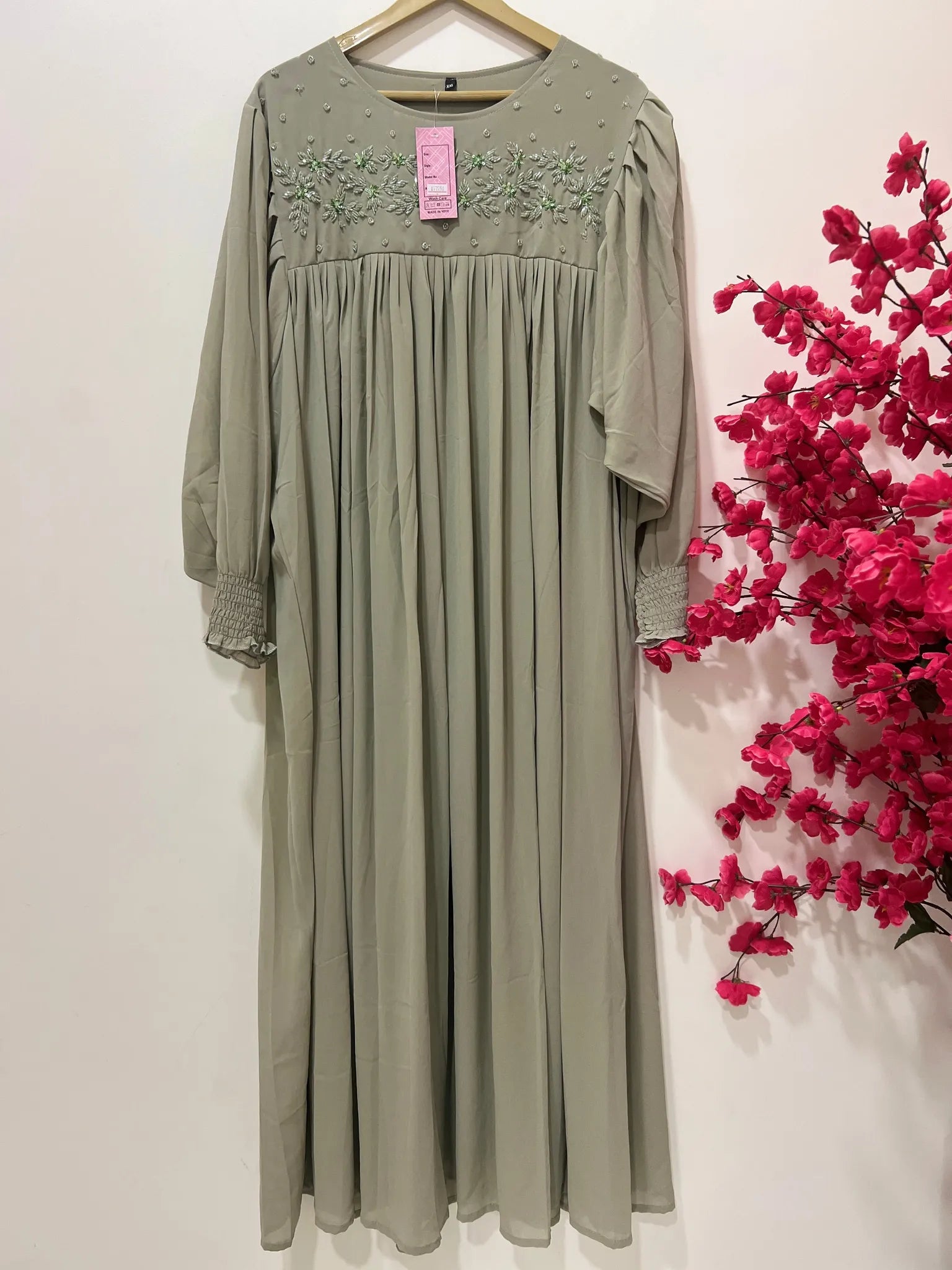 Light olive green/beige+Green type of clr Handworked gown